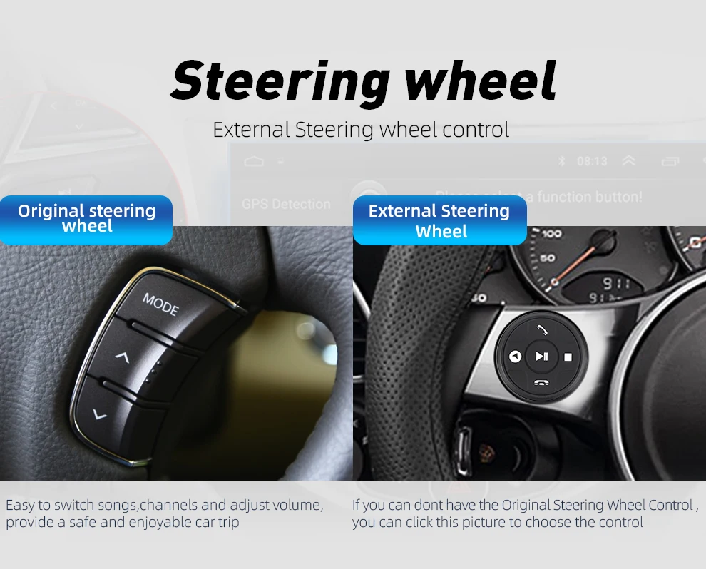 6.Support the steering wheel ,compatible with most of the steering wheel control functions. Easy to switch songs,channels and adjust volume, also for hand-freeBluetooth phone to provide you a safer and more enjoyable journey.