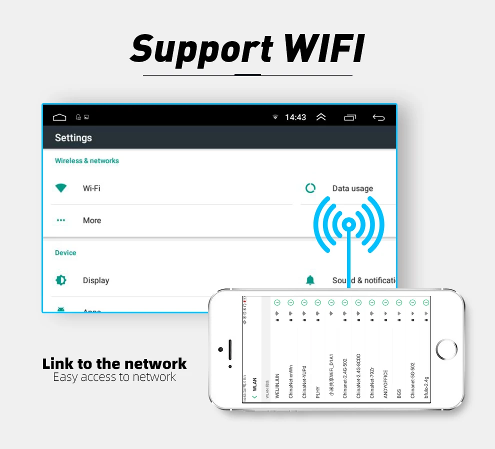10.Support WIFI,you can use the radio connect your phone's hot spot or other Wi-Fi, then you can download any apps you want, and Easy access to network.