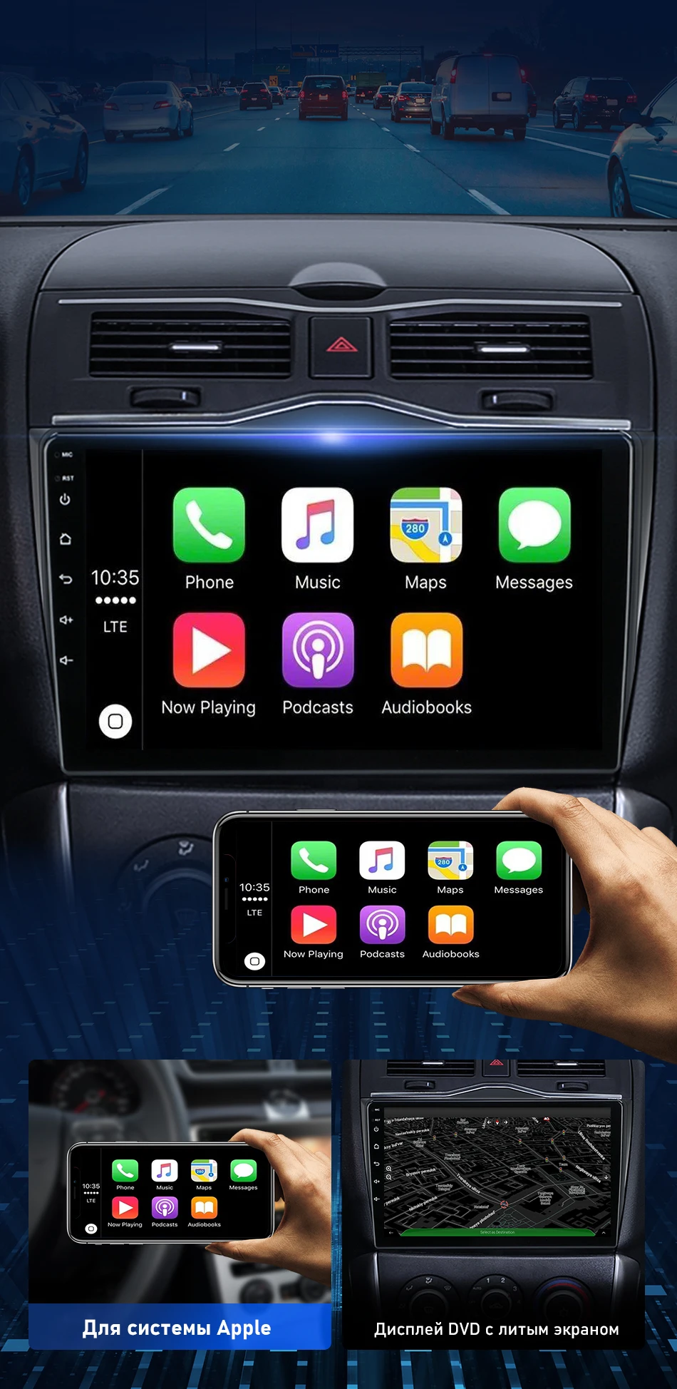 T9 supports mirroring connection of Android and IOS mobile phones, the screen of the mobile phone is displayed on the radio screen, driving is more convenient and intelligent