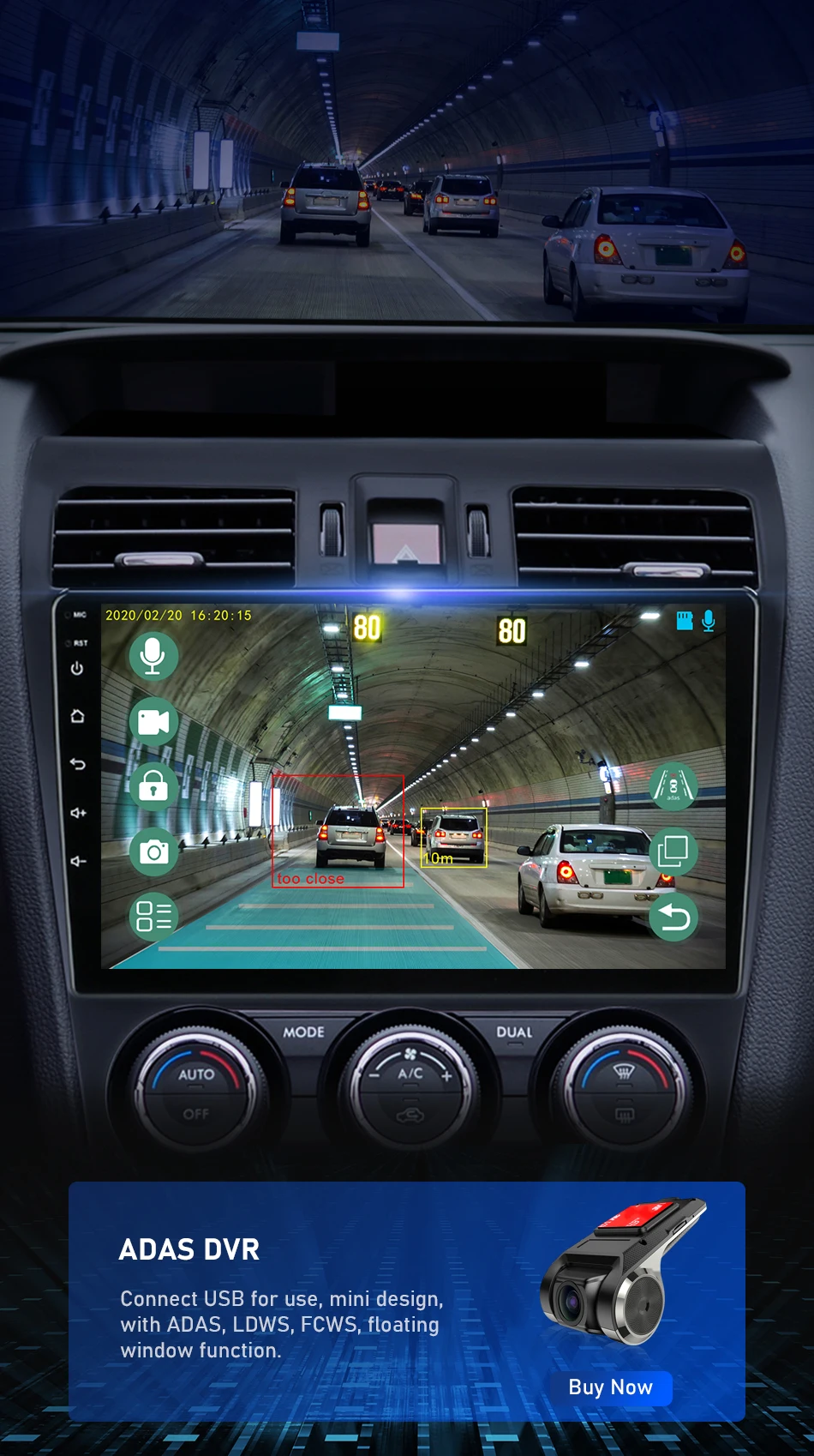 Supports connection to ADAS DVR. ADAS DVR has multiple built-in assistive driving technologies, inserting high-quality TF memory card to record every moment of your driving.