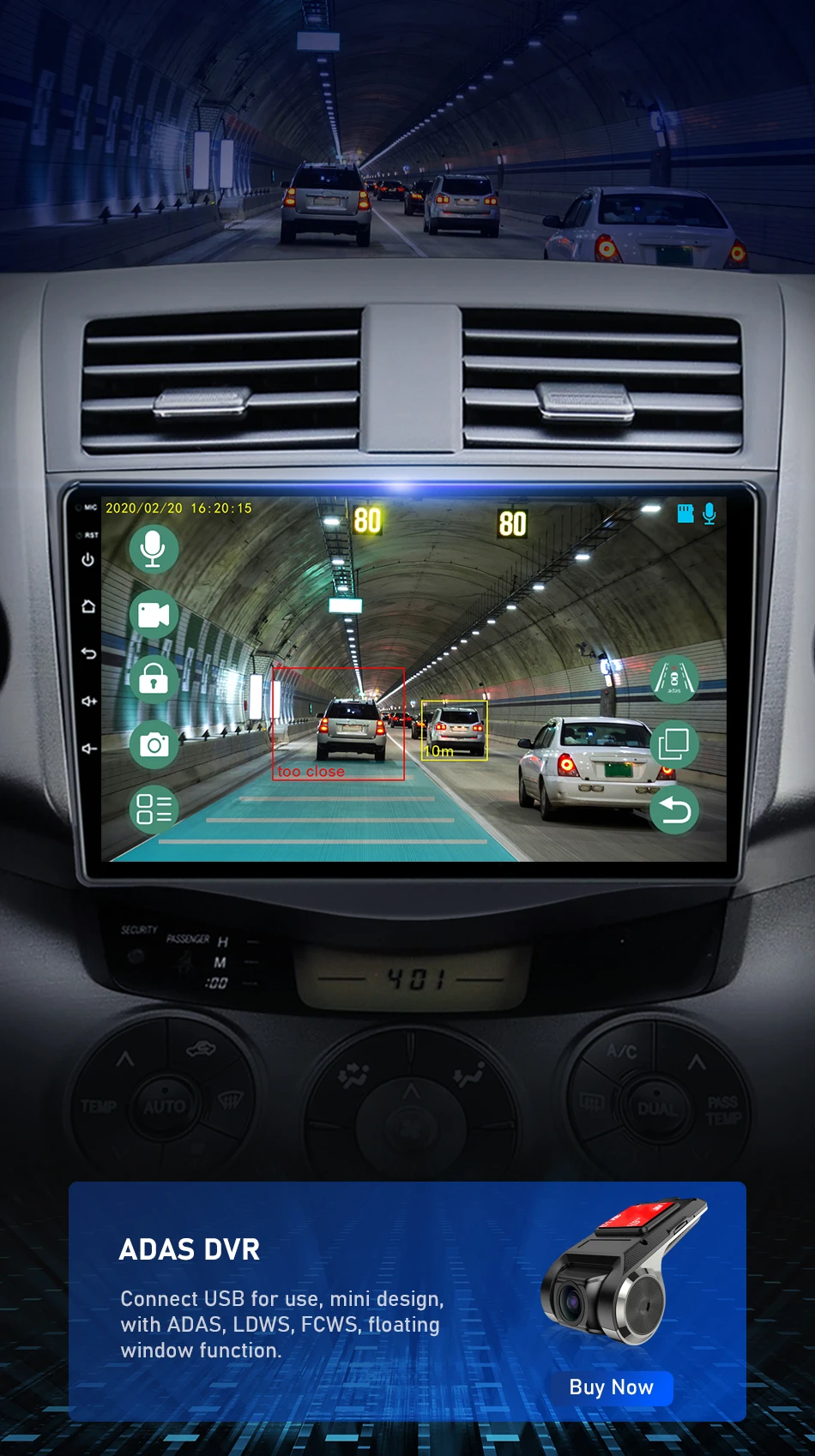 Supports connection to ADAS DVR. ADAS DVR has multiple built-in assistive driving technologies, inserting high-quality TF memory card to record every moment of your driving.