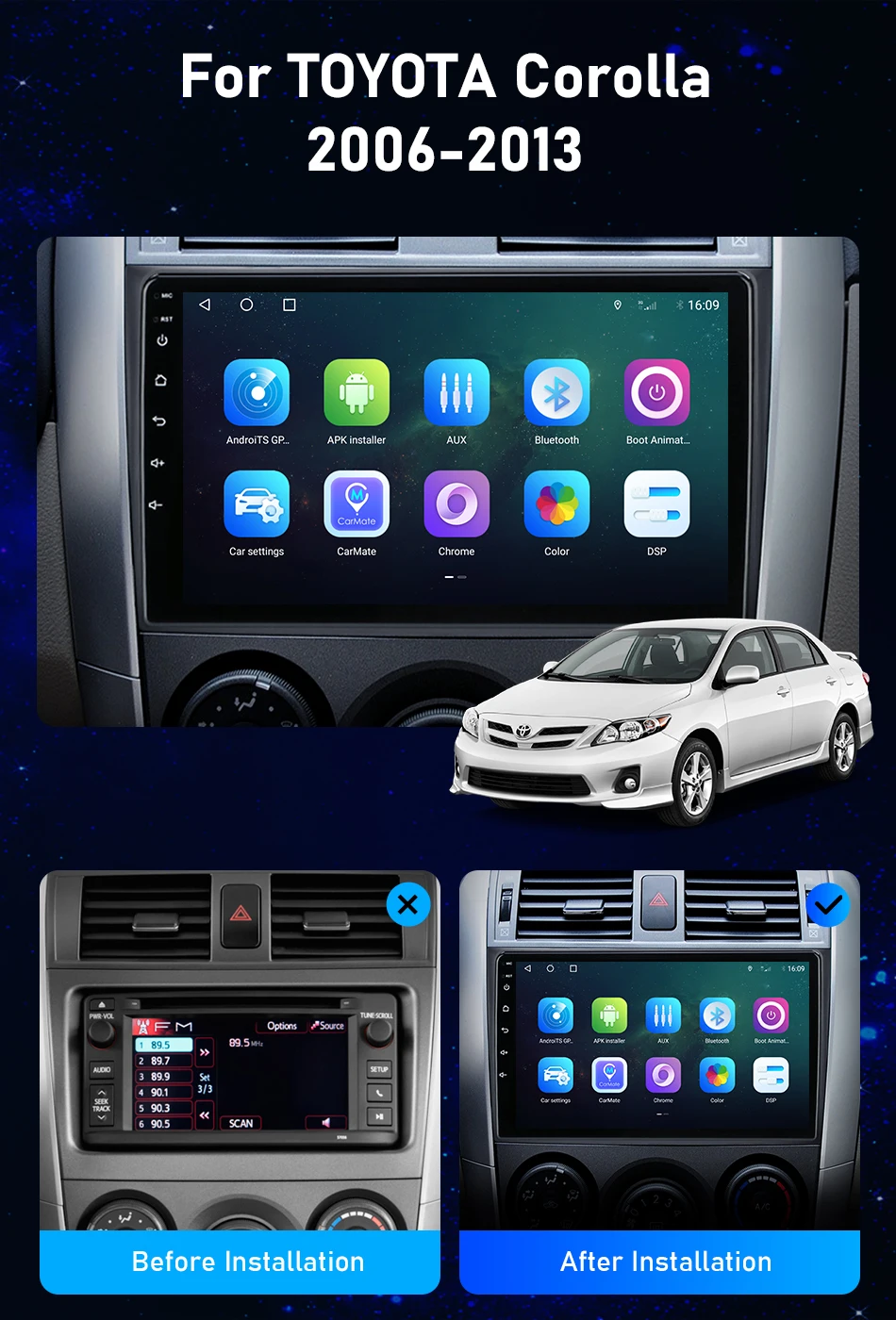 9" Android Car Stereo Radio for Toyota Corolla E140/150 2007 2008 2009 2010 2011 2012 2013 Multimedia Player 2 Din DVD Speakers
