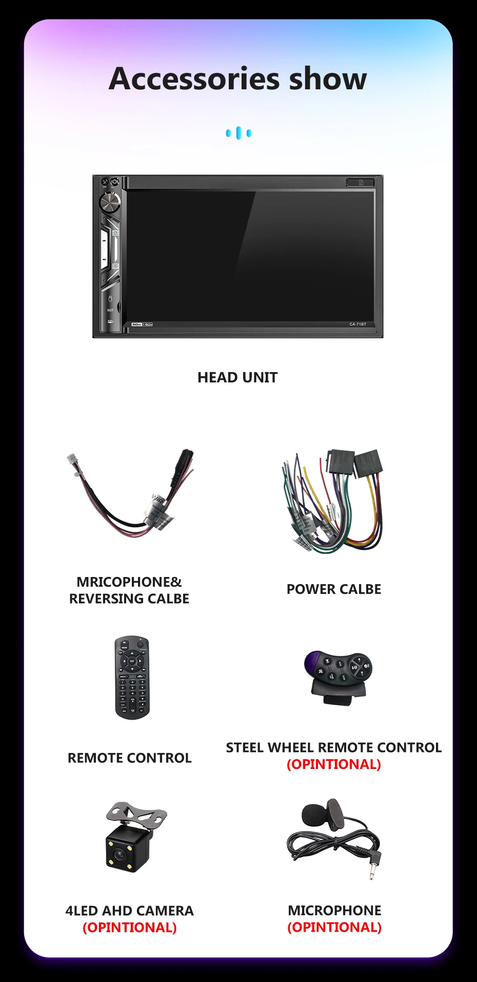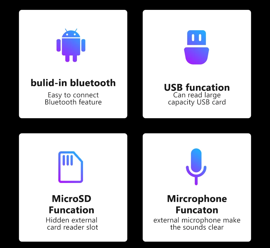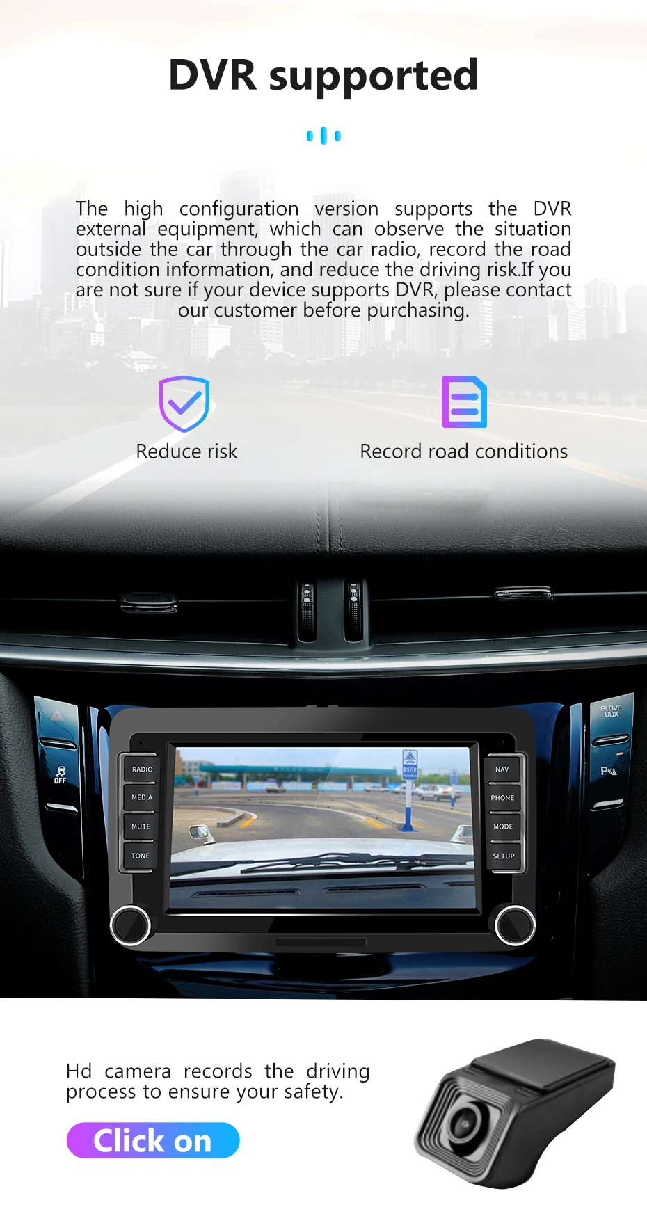 Support rear/front view camera,easy installation and operation.this input automatically powers the rear camera when the vehicle shifts into reverse and displays the image on the unit's screen,it could work as a parking assistance.