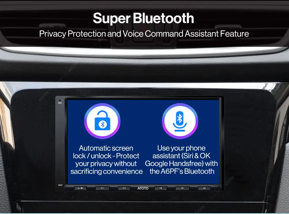 The customized Bluetooth in A6 Performance allows to wake up the phone's voice assistant (Siri, Google Assistant) via Bluetooth connection. So users can use a specific button on the screen or steering wheel controller to send messages, make calls, and control music with their voice. Much more intelligent, much more convenient;