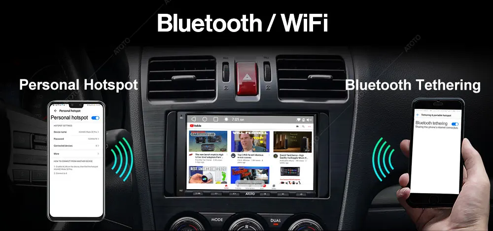 The Bluetooth 2 not only works as Bluetooth tethering internet but also allows to connect to Bluetooth gamepad(for kids in rear seats), Bluetooth OBD2, Bluetooth TPMS, etc.;
