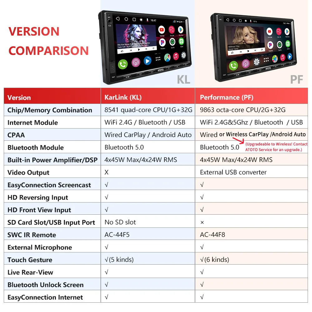 (Upgradeable to Wireless! Contact ATOTO Service for an upgrade.)