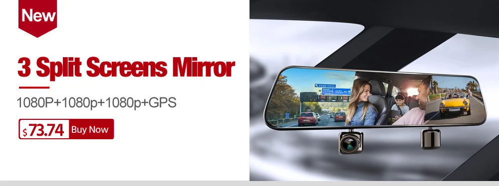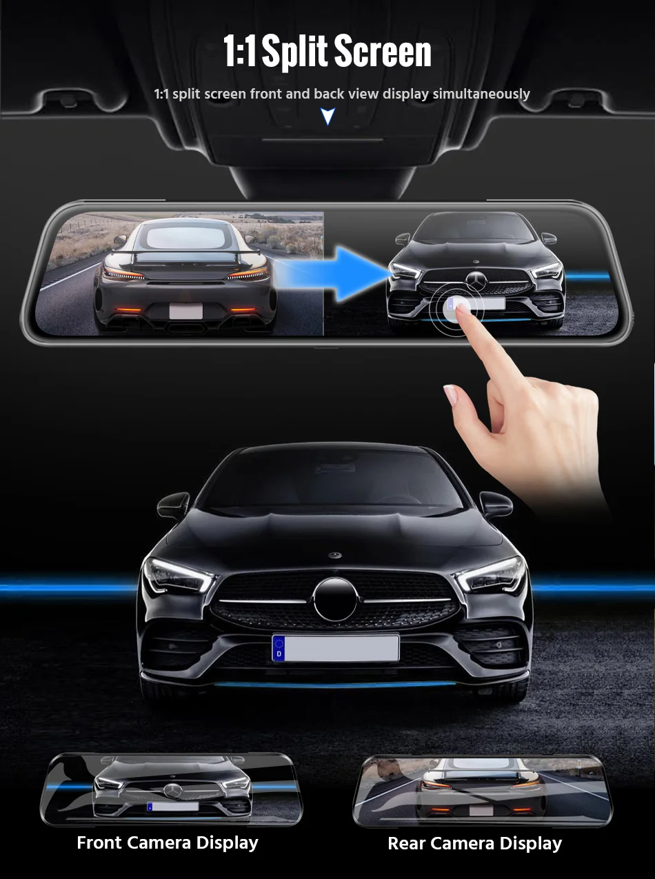 1:1 split screen design to switch front and rearview recording,
