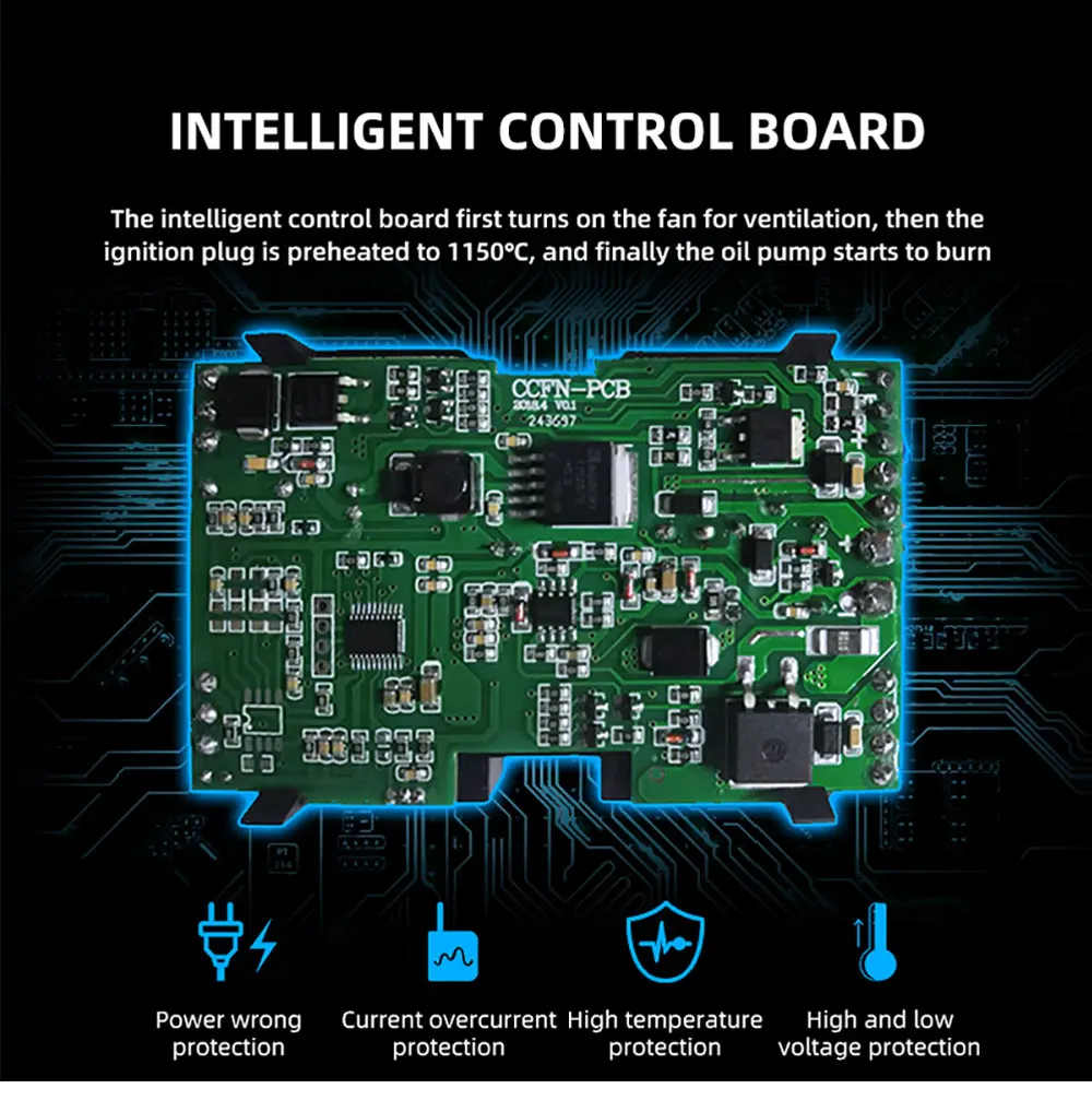 7.Low noise, low energy consumption, low fuel consumption, heater exhaust emission meets Euro IV engine emission requirements;