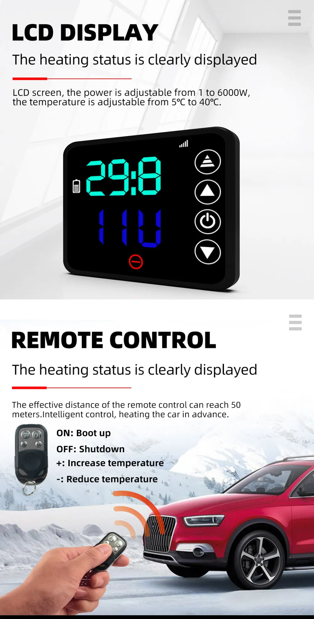 1.No need to start the engine, remote control, heating the car engine and the car at any time.