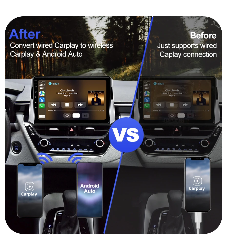 After installation: Convert wired Carplay to wireless Carplay&Android Auto