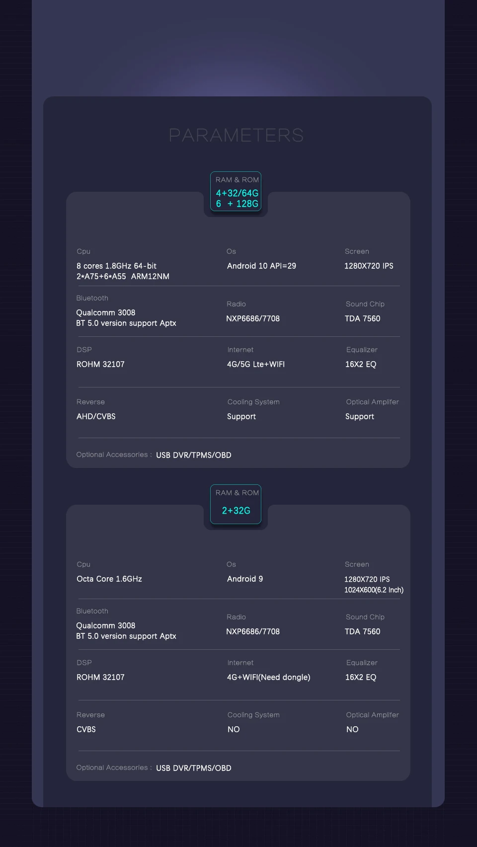 DSP,Carplay and ANDROID AUTO functions for free as Gift(Built in)( 4 Core version do not have)