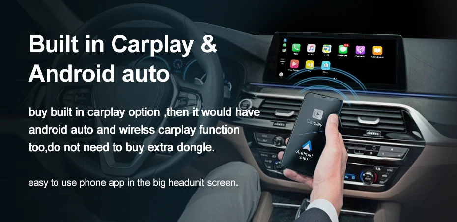 buy built in carplay option ,then it would have android auto and wirelss carplay both function too,do not need to buy extra dongle. easy to use phone app in the big headunit screen
