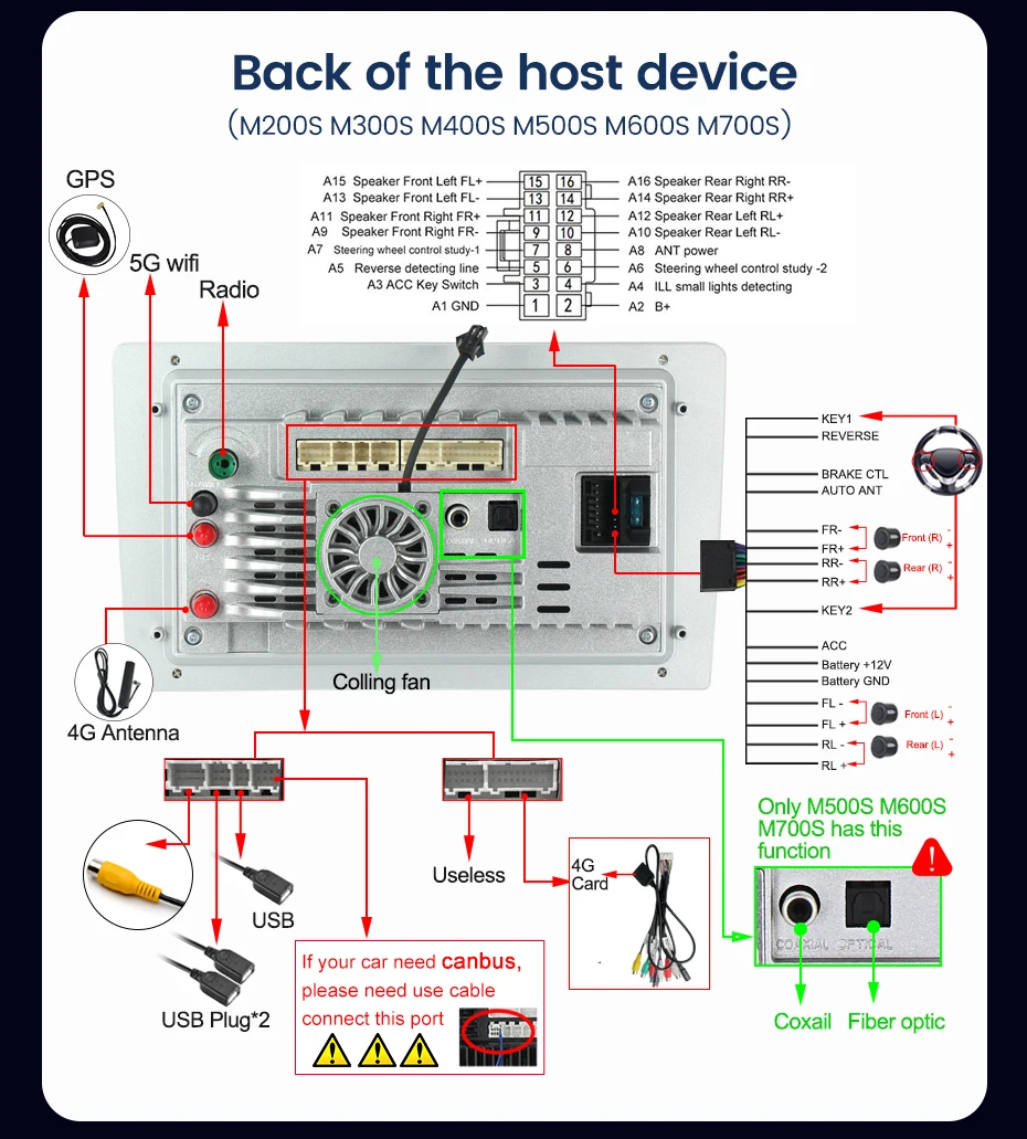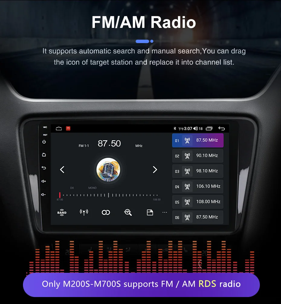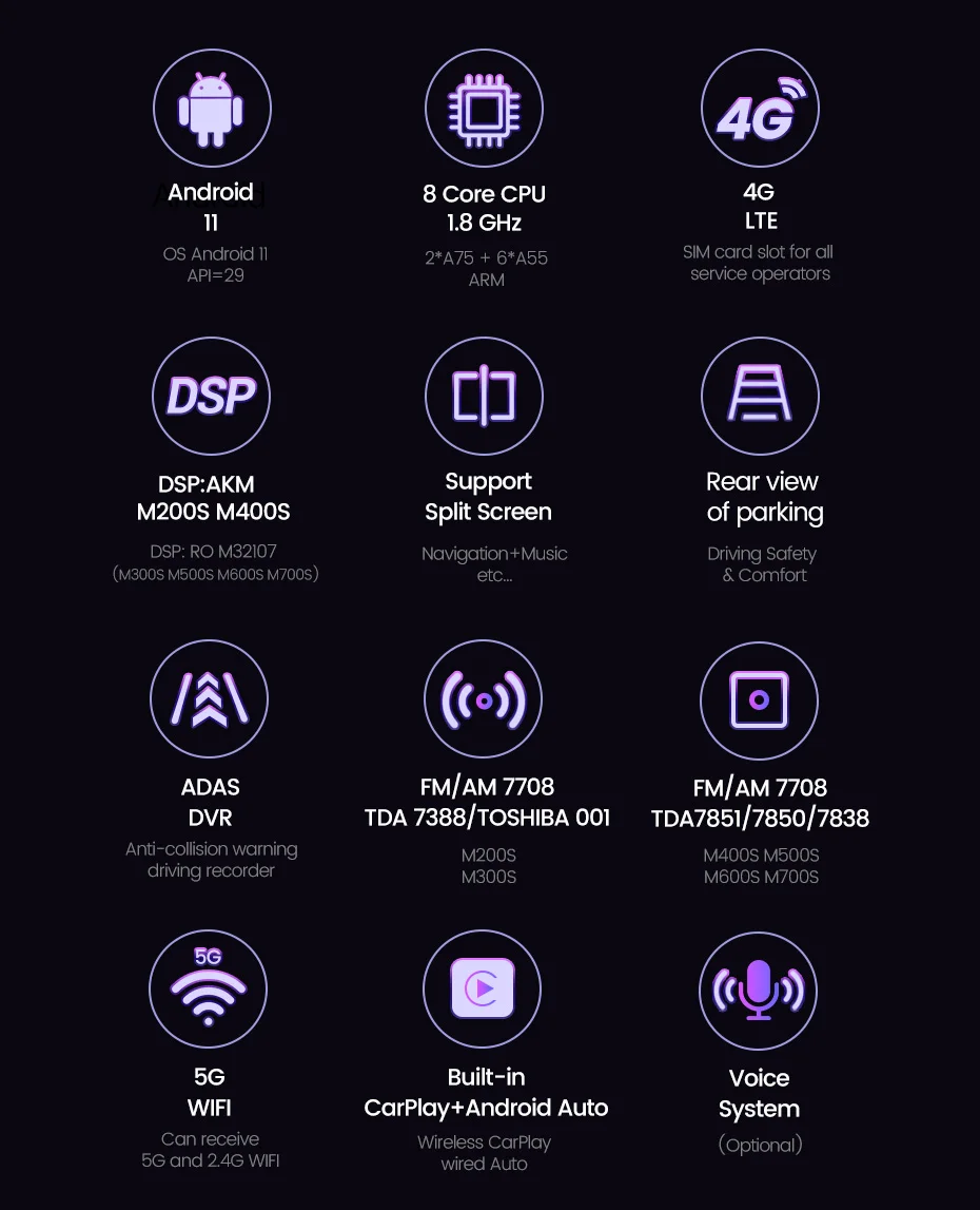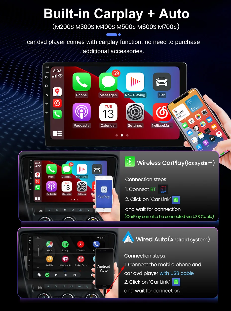 Built-in Carplay + Auto( M2O0S M300S M400S M500S M600S M700S)