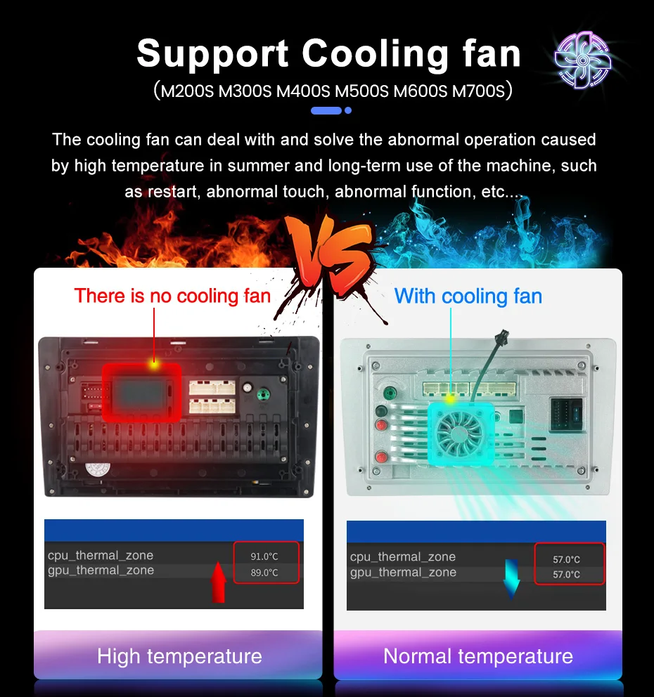 The cooling fan can deal with and solve the abnormal operation caused by high temperature in summer and long-term use of the machine, such as restart, abnormal touch, abnormal function, etc. .