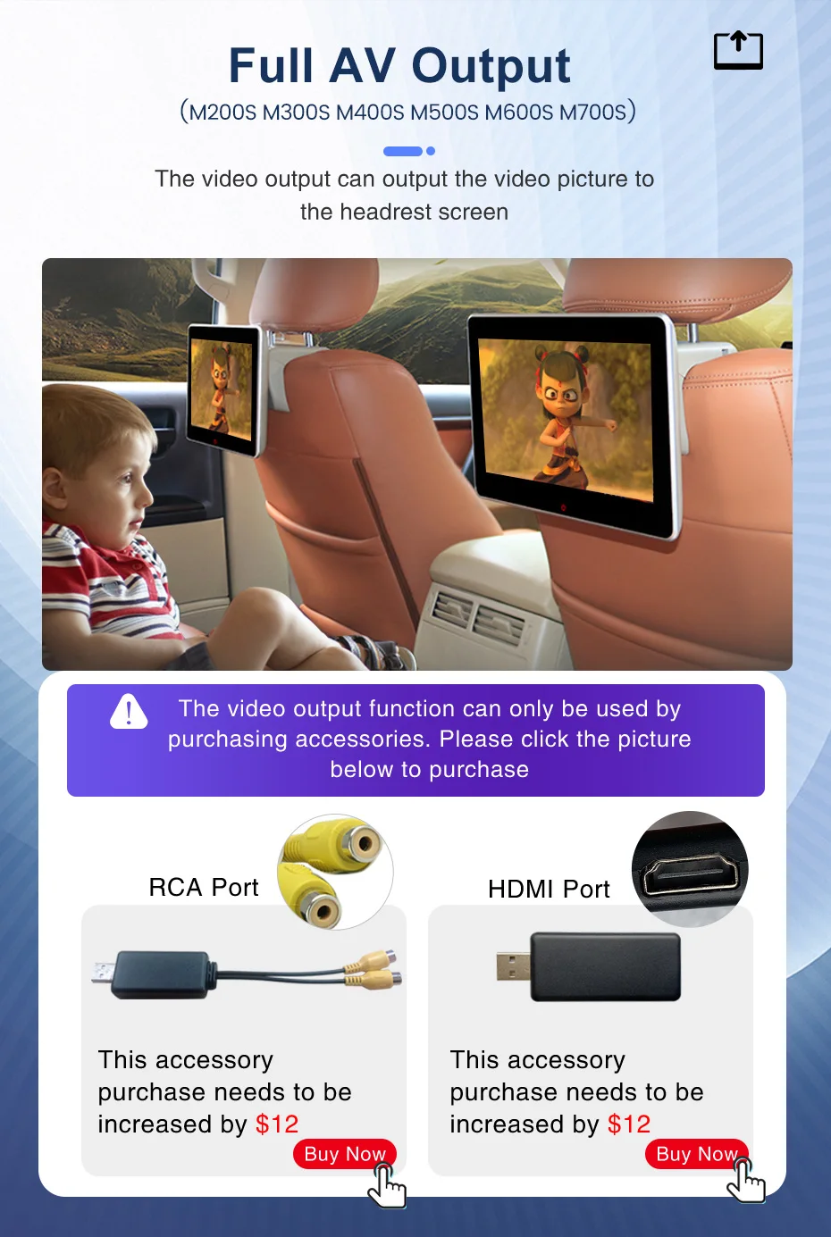 The video output can output the video picture to the headrest screenClick on the image below to buy
