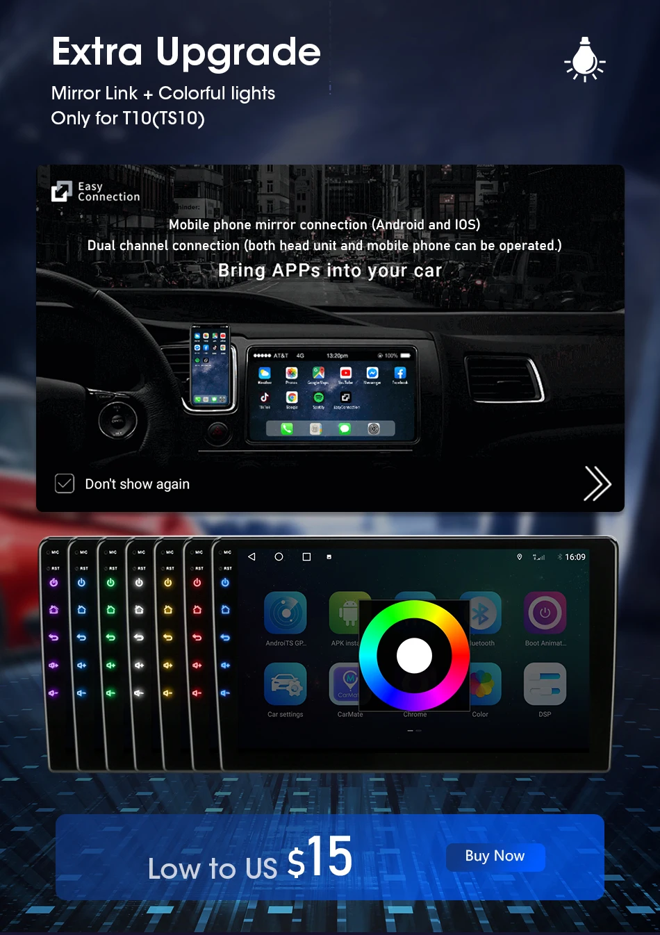 T9 supports mirroring connection of Android and IOS mobile phones, the screen of the mobile phone is displayed on the radio screen, driving is more convenient and intelligent