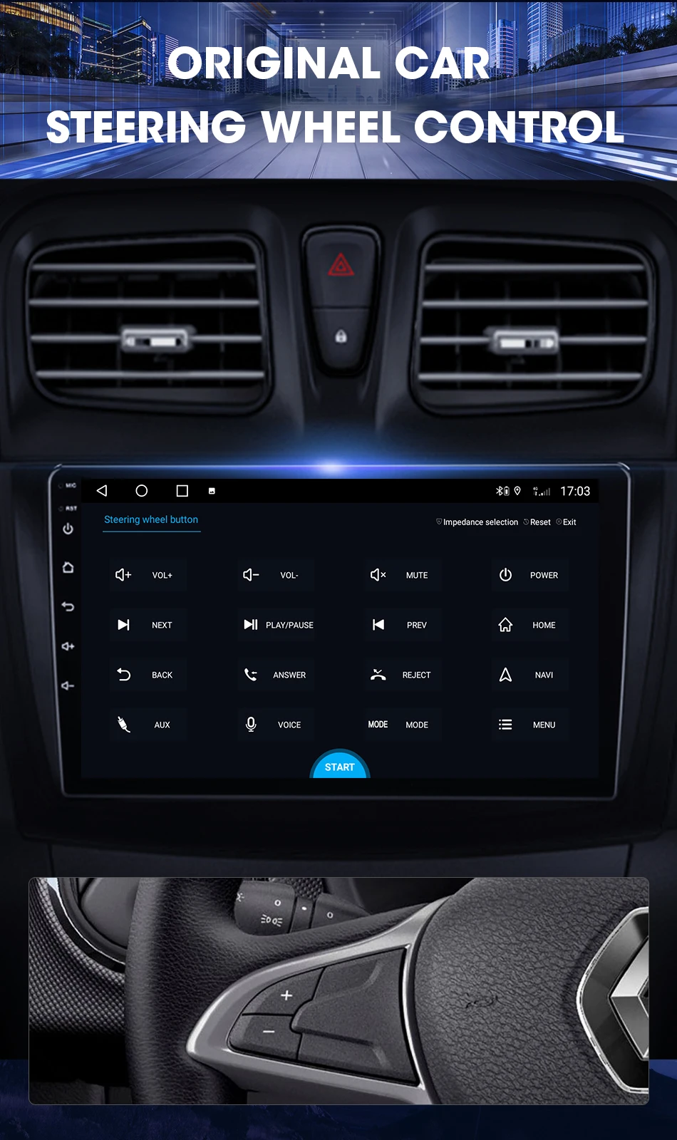 Supports reverse display. When the car is in the reverse mode, the radio will instantly switch to the screen at the back of the car to ensure your driving safety.
