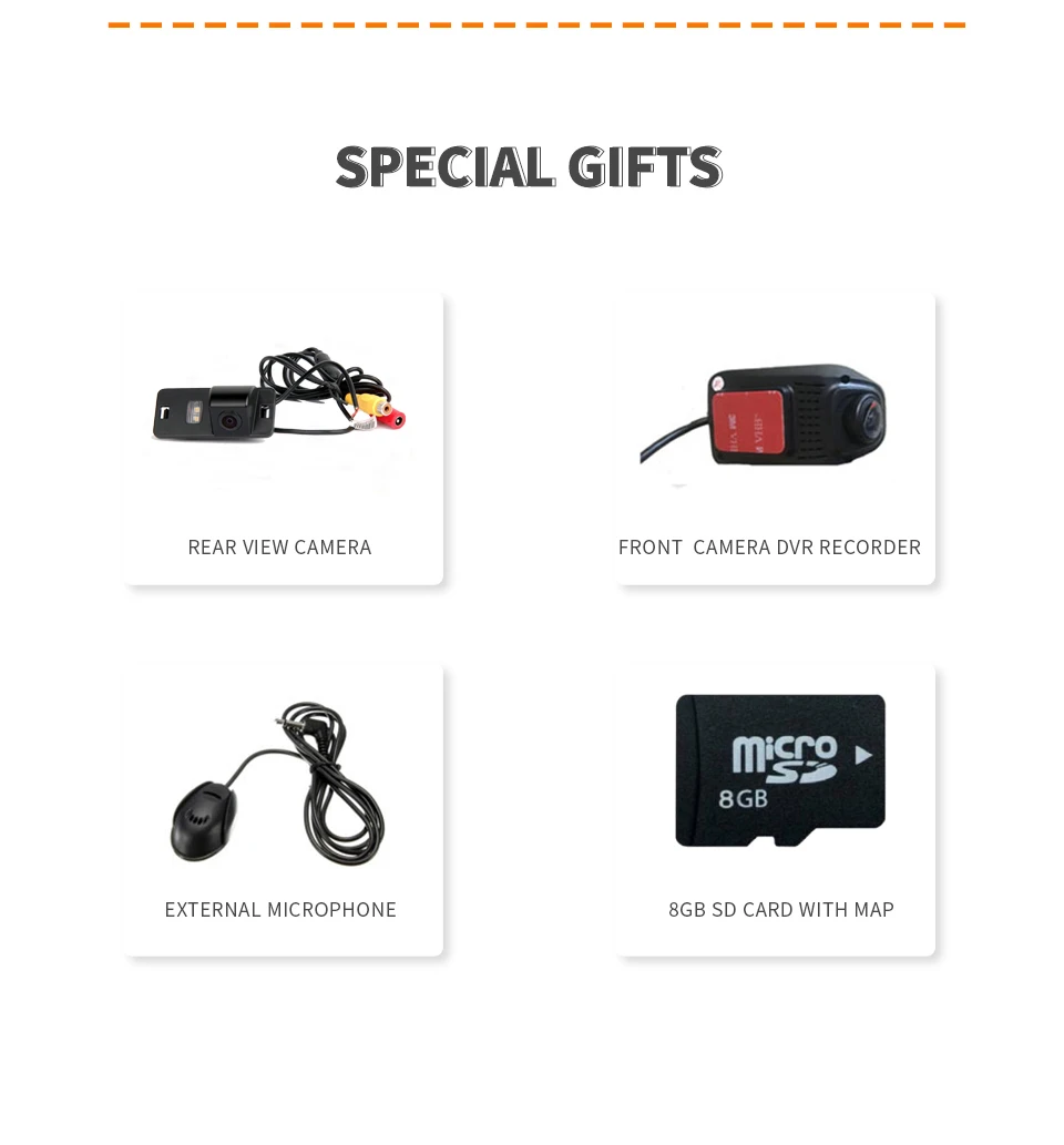 13. Rear view camera+front view camera DVR+ 8GB SD card with Map+External Microphone include