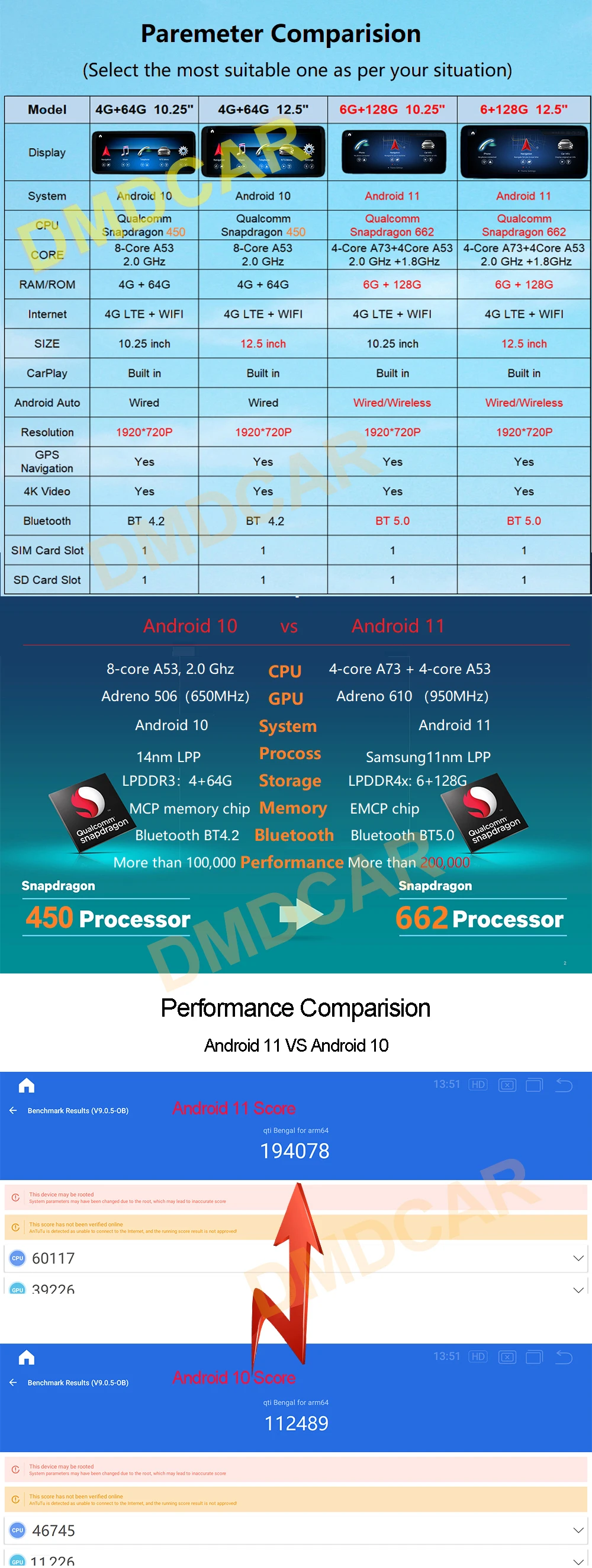 - Qualcomm MSM 8953 Snapdragon 662 8Core CPU, up to 2.0ghz, DDR3 6G RAM, 128G ROM (Optional)