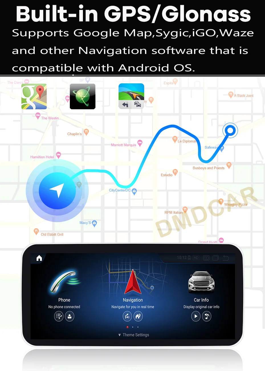 Built-in GPS/GLONASS. Supports Google map, Waze, iGo, Navitel, Sygic, etc, Enjoy all your travels worldwide, and no need to worry about getting lost.
