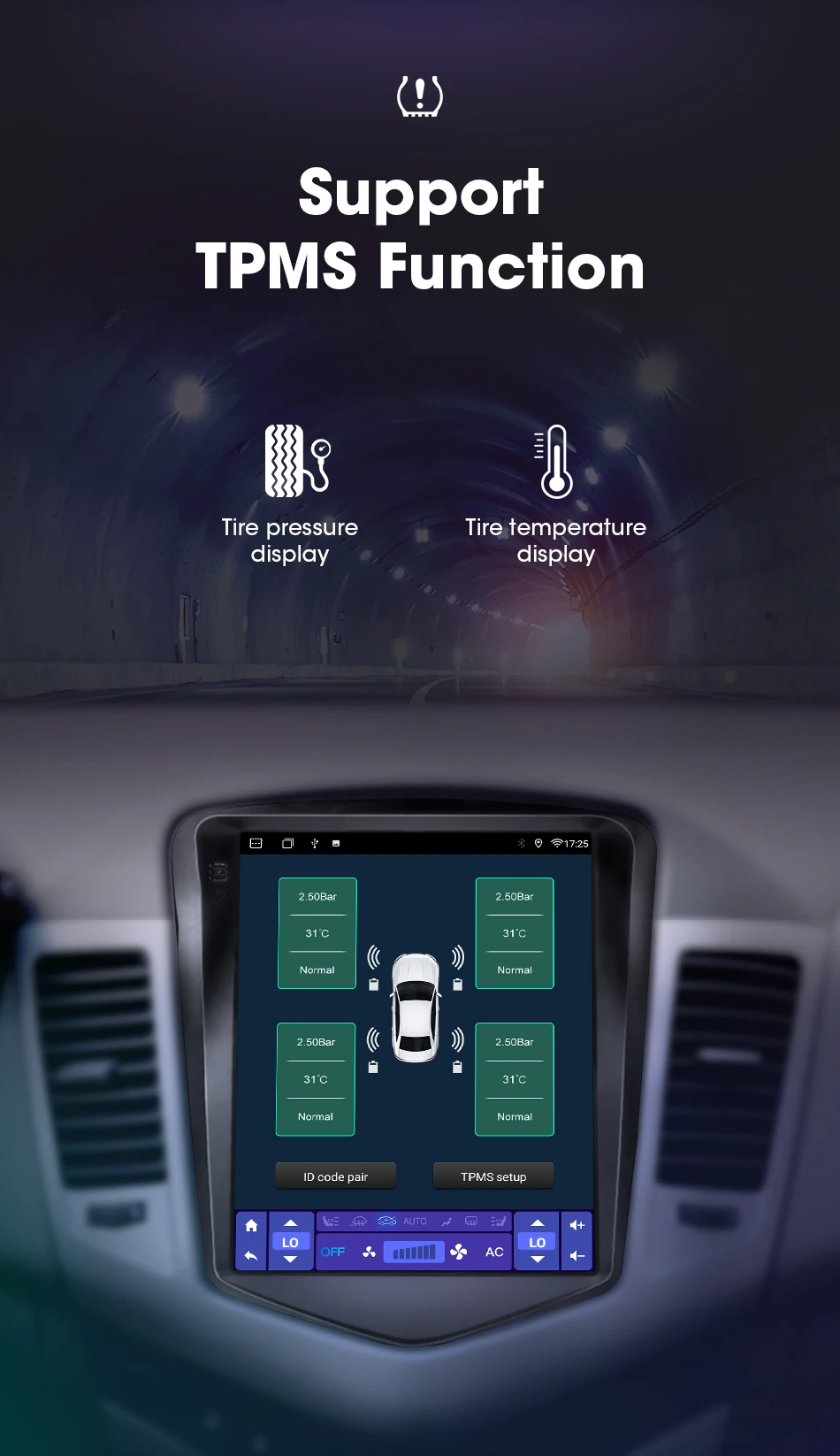 Can be used in conjunction with our TPMS tire pressure monitoring system to monitor tire temperature and pressure in real time