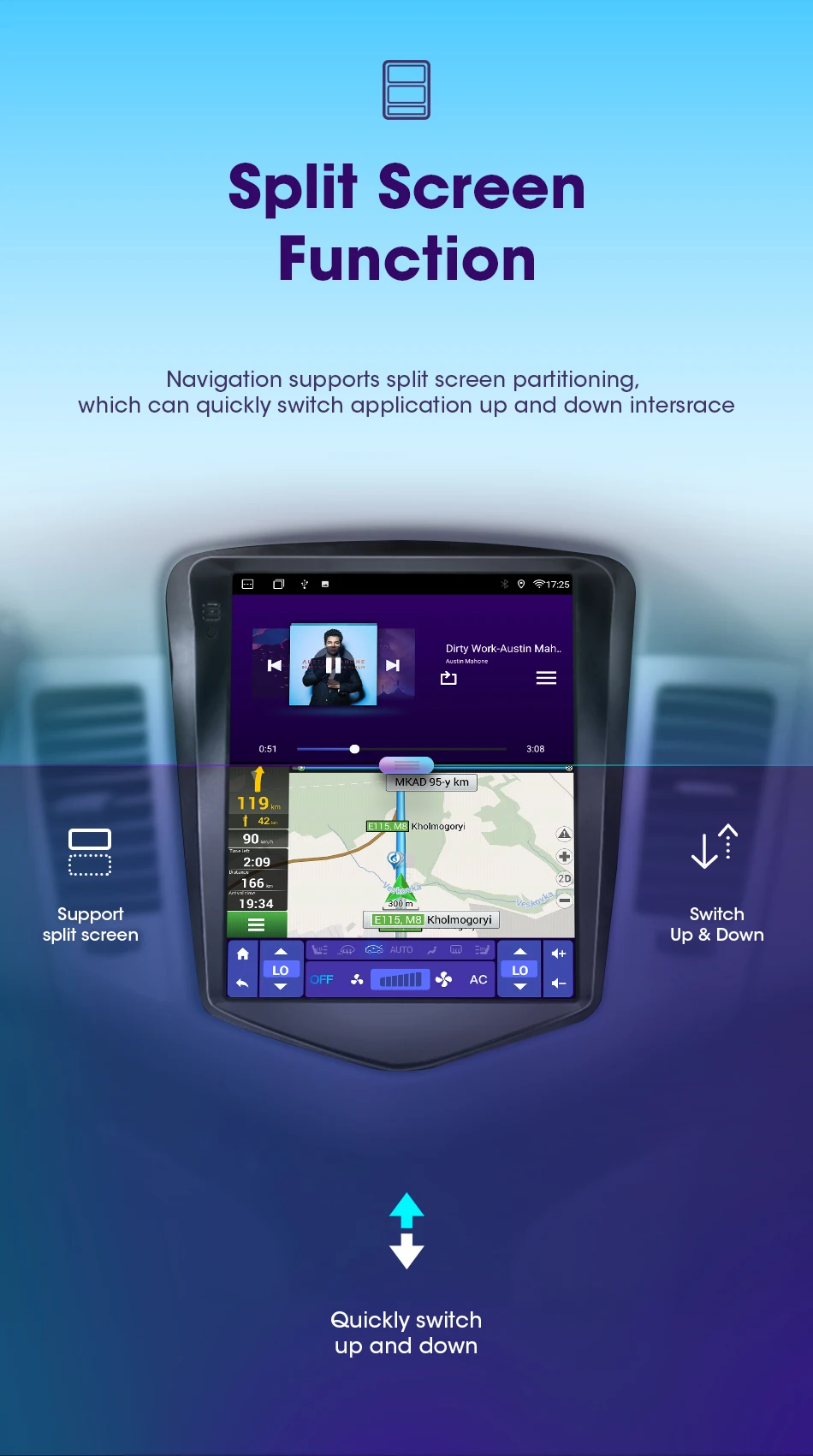 Two screens can be turned on at the same time for navigation and driving, and listening to music at the same time, making driving more enjoyable and more immersive