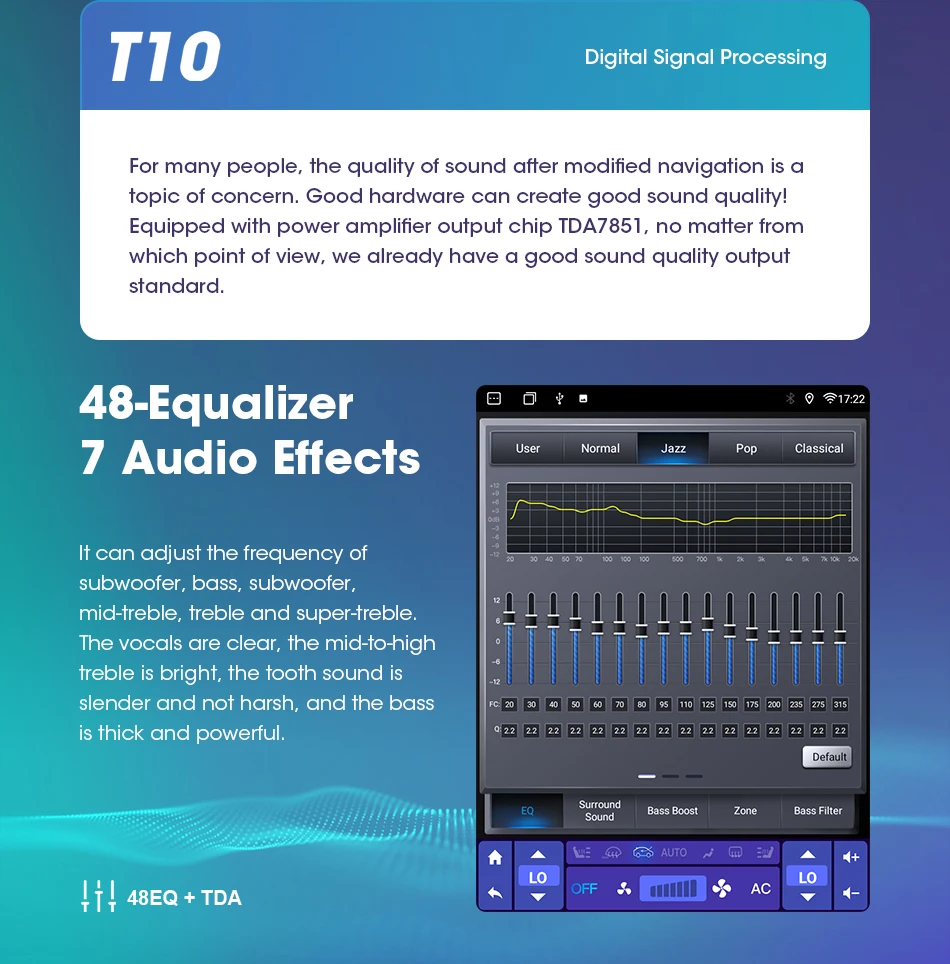 T10 Powerful amplifier processor makes the sound more perfect, 48EQ makes everyone can become a professional tuner