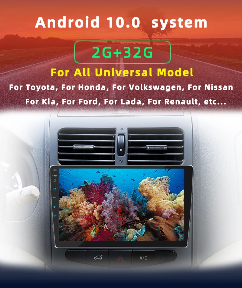2 Din Android 10.0 car multimedia player, suitable for Volkswagen, Nissan, Toyota, Hyundai, Polo
