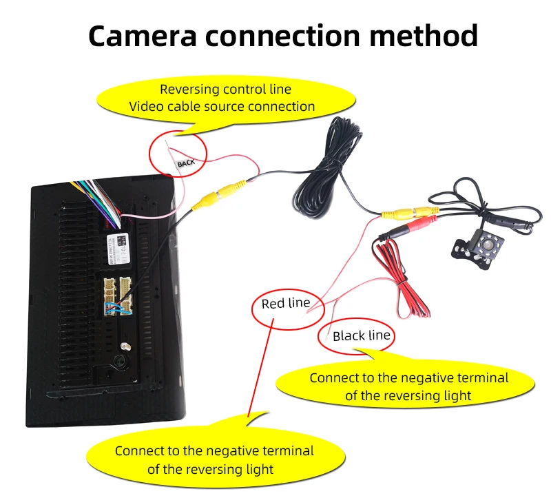 11. Reversing camera: Need to select a camera, the car will automatically connect the reversing switch (optional).
