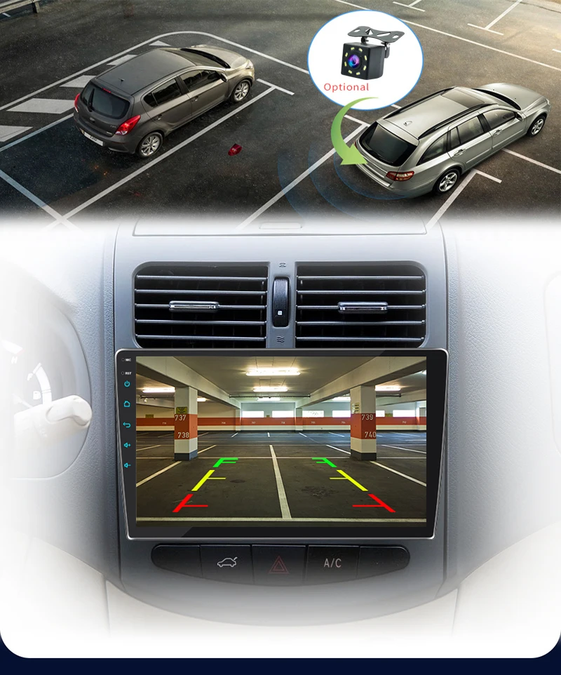 When reversing at a time, the player will automatically switch to the reversing camera image with a parking line, making reversing safer.