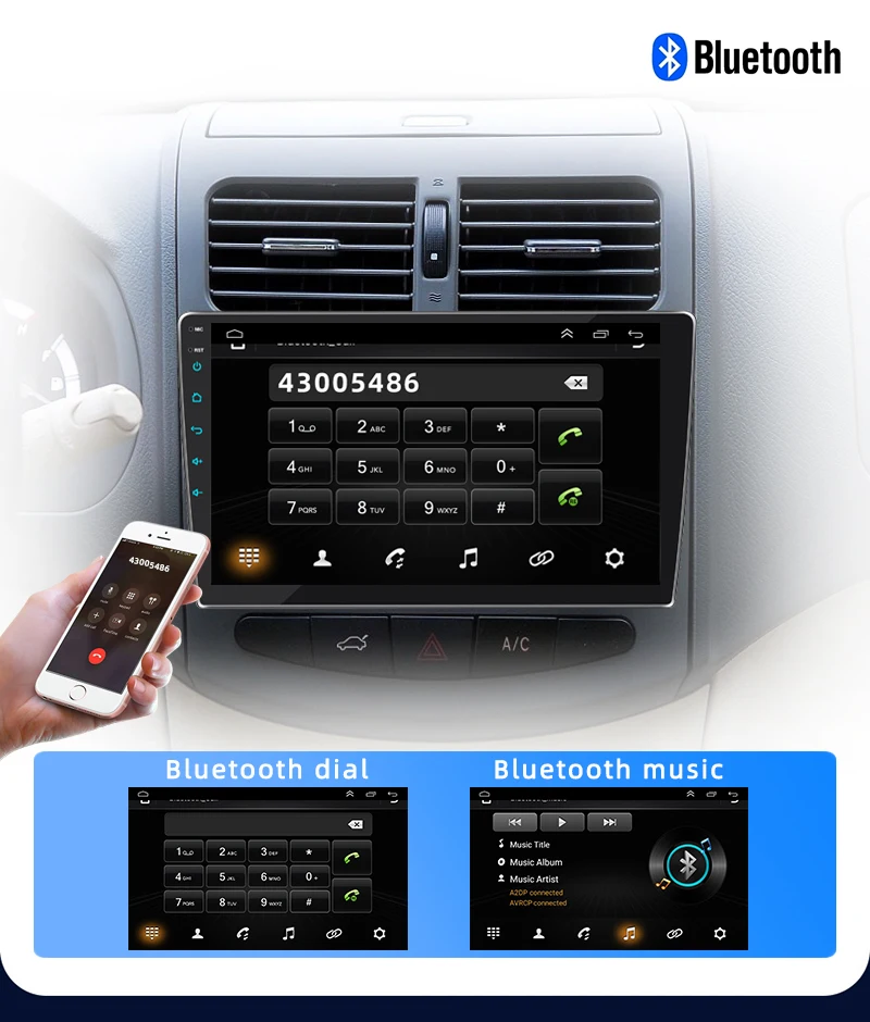 13. Built-in Bluetooth 5.0 A2DP/hands-free/phone book: Bluetooth hands-free call, Bluetooth music playback, automatic loading of phone book calls.