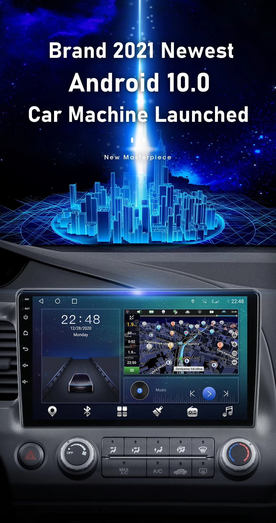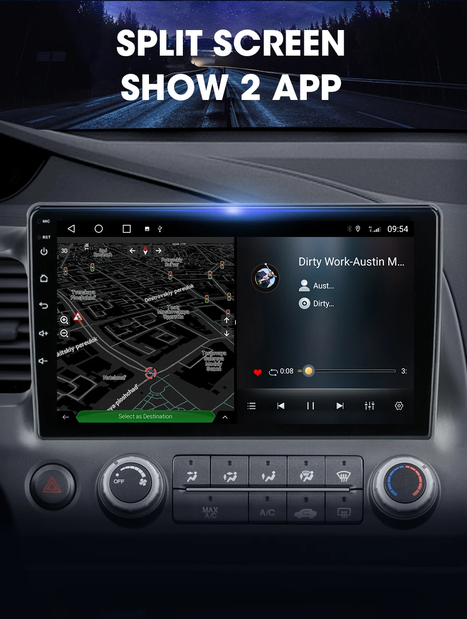 Android AI Voice Control 4G Car Radio Multimedia for Honda Civic 8 2005-2012 GPS Navigation 2din MP5 DVD Stereo Carplay Speakers