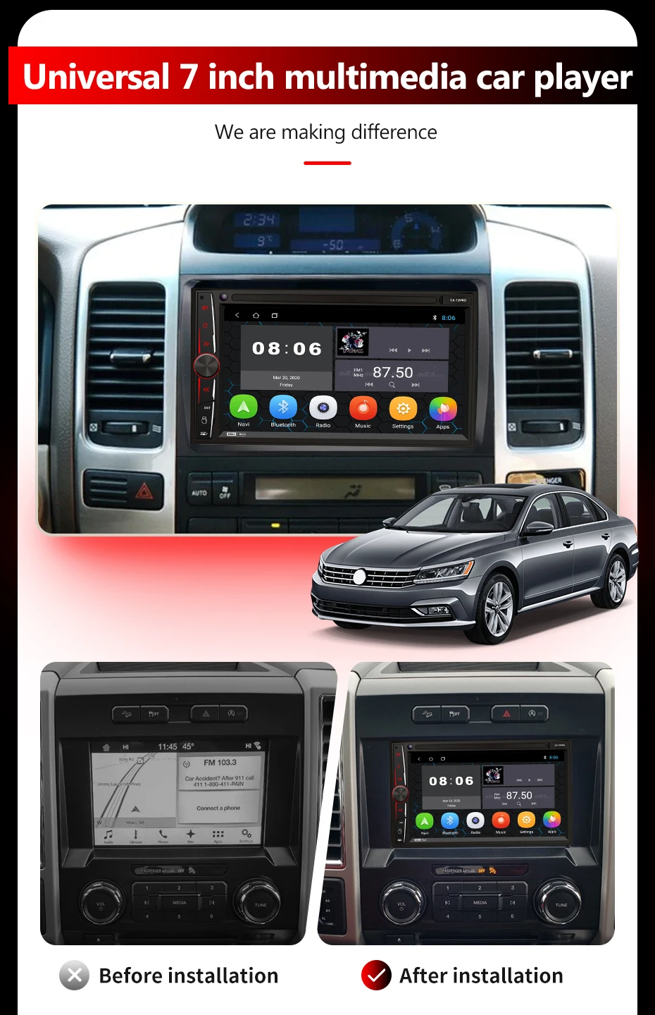 Buy Android Car Radio 2 Din 2.5D Touch Screen With GPS Navigation Multimedia Video Player For VW Toyota Nissan Hyundai 7" Universal Right Here and Right Now, You will save money, do not let yourself be disappointed the next day, and immediately have Android Car Radio 2 Din 2.5D Touch Screen With GPS Navigation Multimedia Video Player For VW Toyota Nissan Hyundai 7" Universal before the product is sold out.