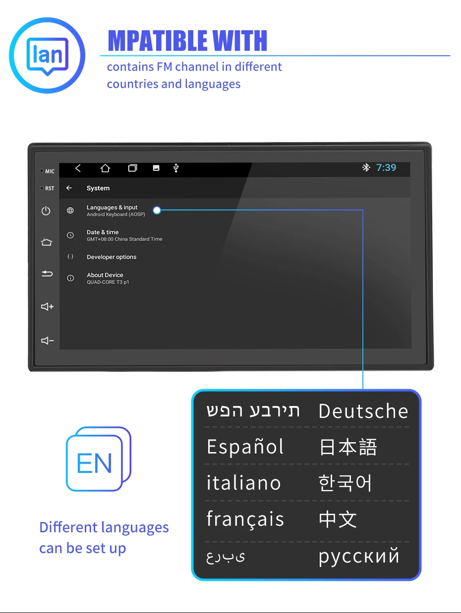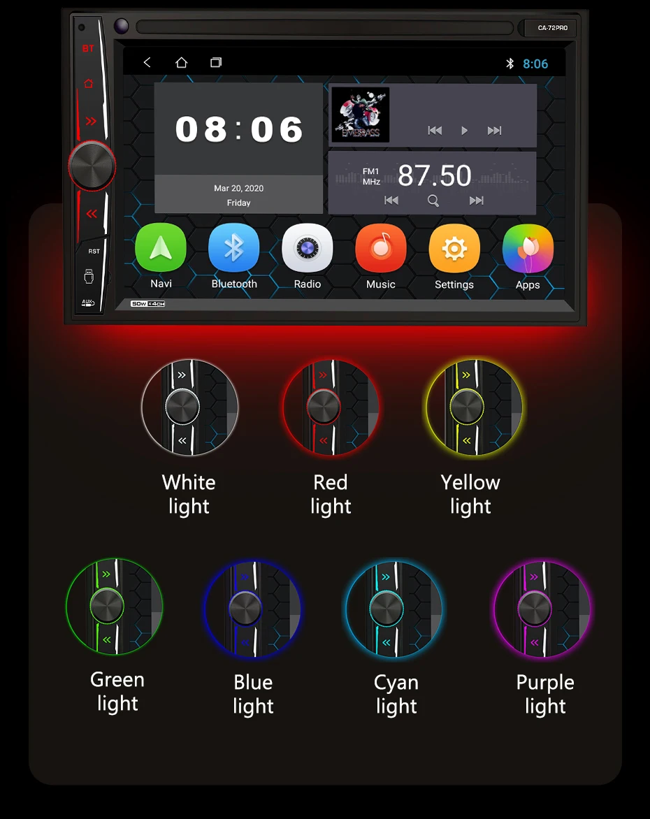 72PRO is the physical touch screen , with front USB ,AUX slot.