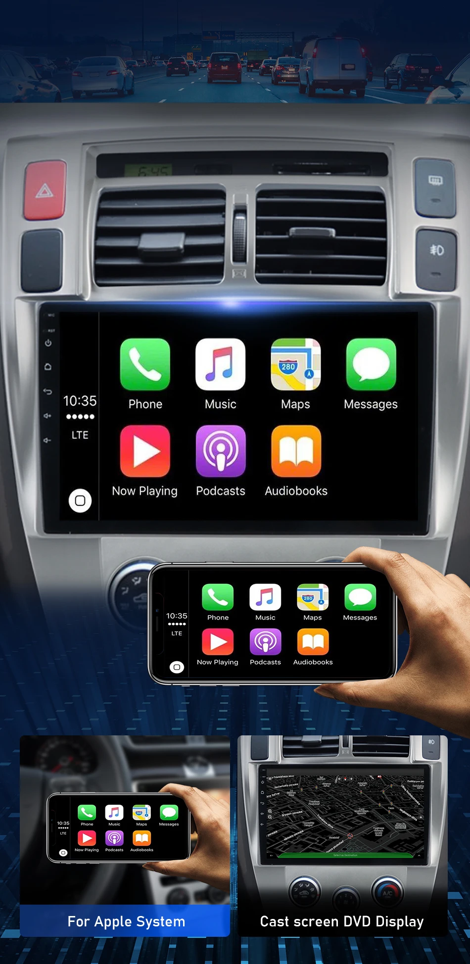 Supports reverse display. When the car is in the reverse mode, the radio will instantly switch to the screen at the back of the car to ensure your driving safety.