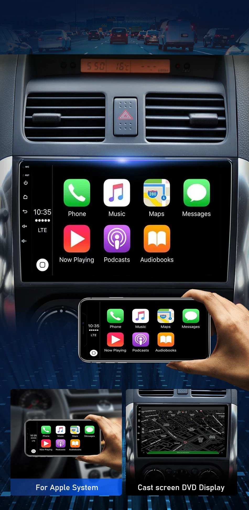 Supports reverse display. When the car is in the reverse mode, the radio will instantly switch to the screen at the back of the car to ensure your driving safety.