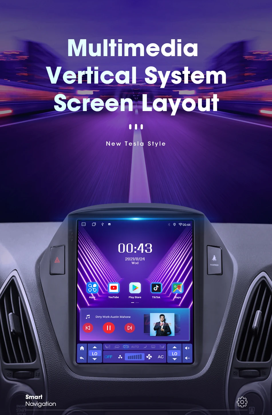 Android for Hyundai IX35 Tucson 2009-2015 Tesla Style 9.7" Screen Car Radio Multimedia 2 Din Navigation Carplay Stereo Head Unit